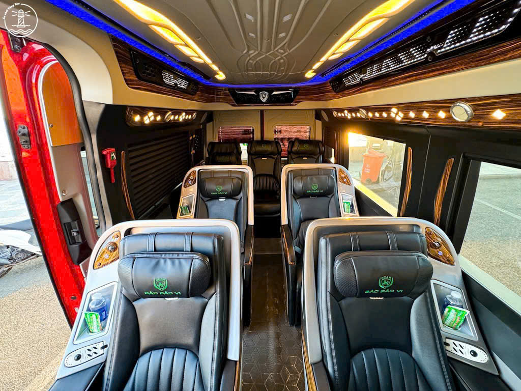 Xe 9 chỗ đời mới, đón tận nhà, ghế massage, WiFi, nước suối. Khởi hành linh hoạt suốt ngày.